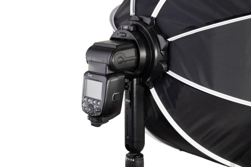 - Standardowe zewnętrzne lampy błyskowe: Adapter w zestawie z softboxem kompatybilny z popularnymi lampami Canon, Nikon, Sony, Fujifilm, Nissin, Godox i Yongnuo.