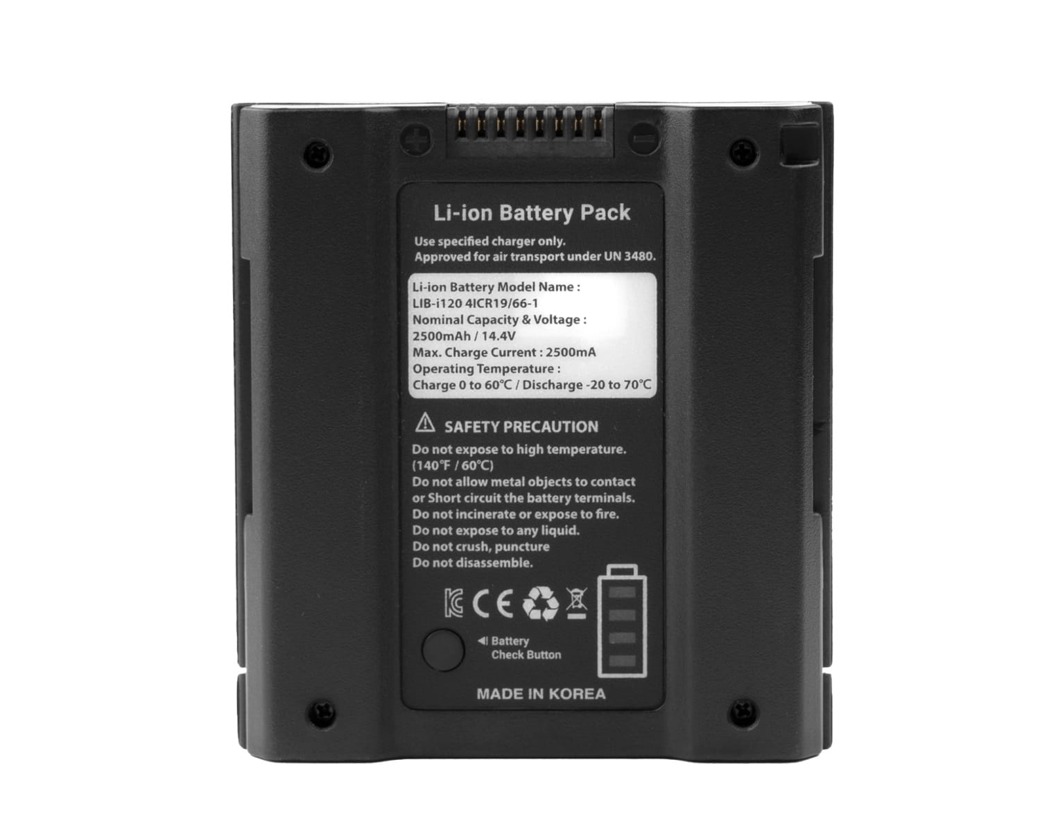 Wymienny akumulator do lamp TX120 i TX240 o wydajności do 900 błysków z pełną mocą błysku.