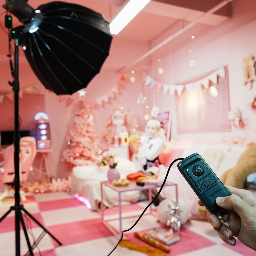 Zasięg sterowania bezprzewodowego może wynosić nawet około 30m, co pozwala kontrolować oświetlenie z dowolnego miejsca w studiu.