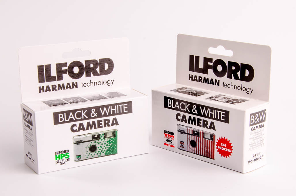 ILFORD Black&White Camera HP5 Plus to jednorazowy aparat fotograficzny, z filmem czarno-białym ILFORD HP5 Plus, 27 klatek, ISO 400 i lampą błyskową.