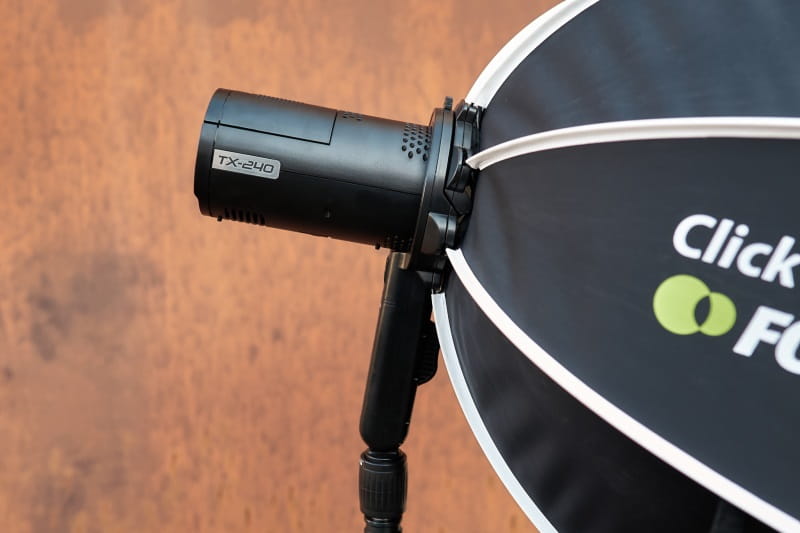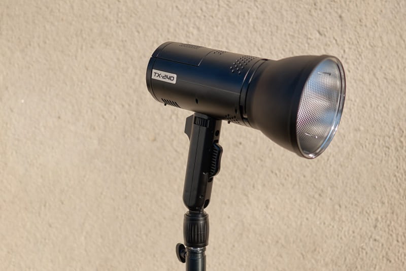 Akumulatorowa lampa błyskowa TX240 to najnowszy produkt z serii TX, cenionej przez fotografów za kompaktowe rozmiary i potężne funkcje. Lampa ta łączy w sobie maksymalną energię błysku 240 Ws, mocne światło pilotujące LED o mocy 15 W, High-Speed Sync (HSS), wbudowany odbiornik radiowy, oraz możliwość aktualizacji oprogramowania. Akumulator zapewnia do 400 błysków przy pełnej energii, a wszystko to w obudowie wielkości puszki po napojach.