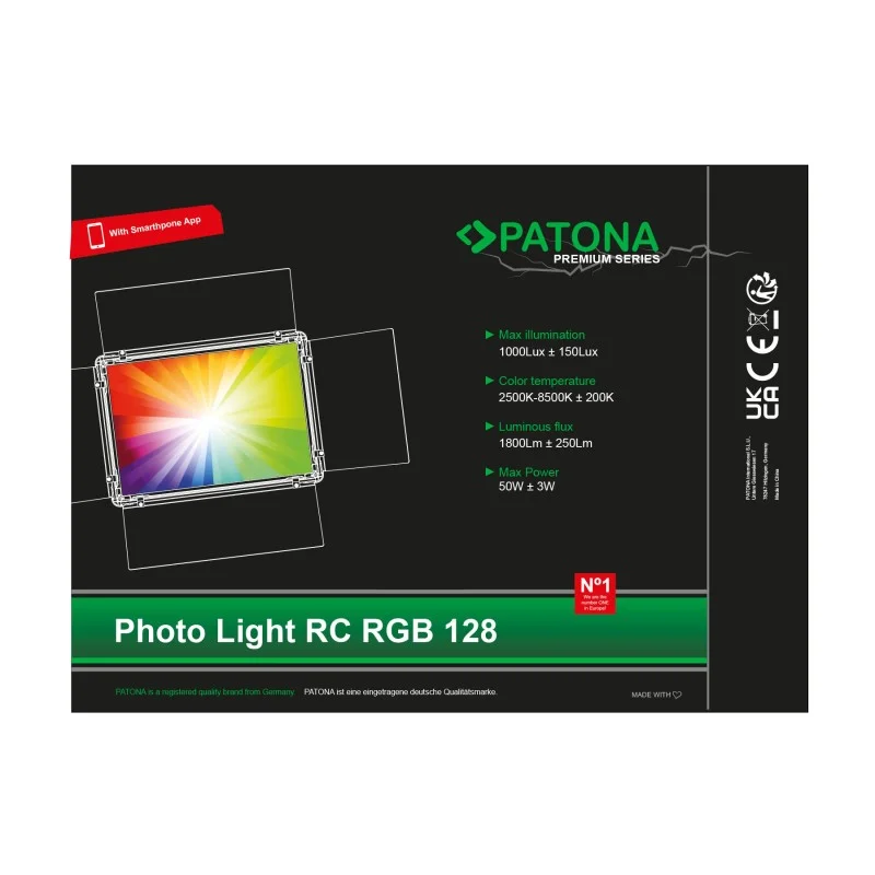 PATONA Premium Lampa LED RGB-128A do fotografii i wideo z aplikacją mobilną i wrotami – mobilne, kreatywne oświetlenie studyjne