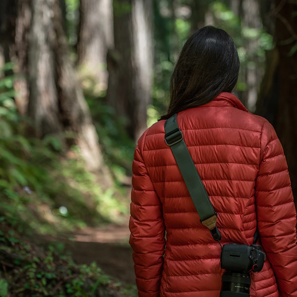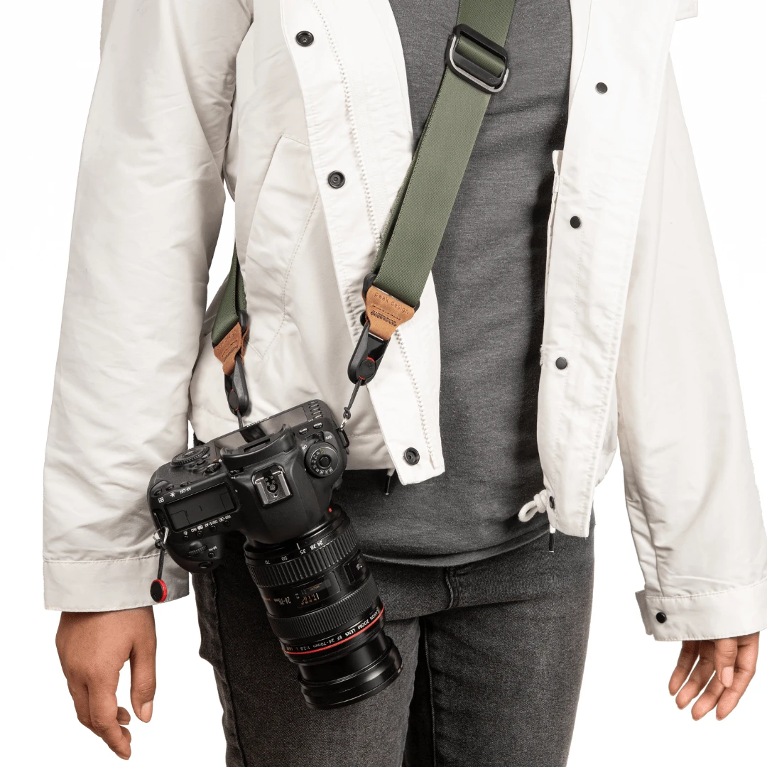 To właśnie wszechstronność jest jedną z największych zalet modelu Slide V3. Szeroka konstrukcja dobrze rozkłada ciężar aparatu, dzięki czemu pasek świetnie sprawdza się nie tylko z lekkimi bezlusterkowcami, ale również z cięższymi lustrzankami, body z gripem czy zestawami z większym obiektywem. Jedna strona paska została wykończona silikonowymi elementami, które ograniczają zsuwanie się z ramienia, a druga jest gładka, co ułatwia przesuwanie podczas noszenia na szyi. To rozwiązanie szczególnie docenisz w reportażu, podróży, na ślubach, eventach i wszędzie tam, gdzie aparat musi być zawsze pod ręką.