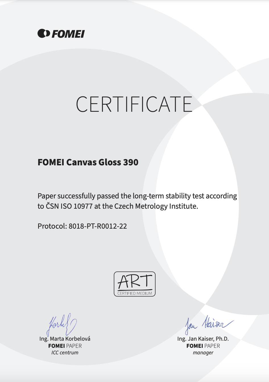 Płótna FOMEI z normą ISO 10977 – jakość bez kompromisów.