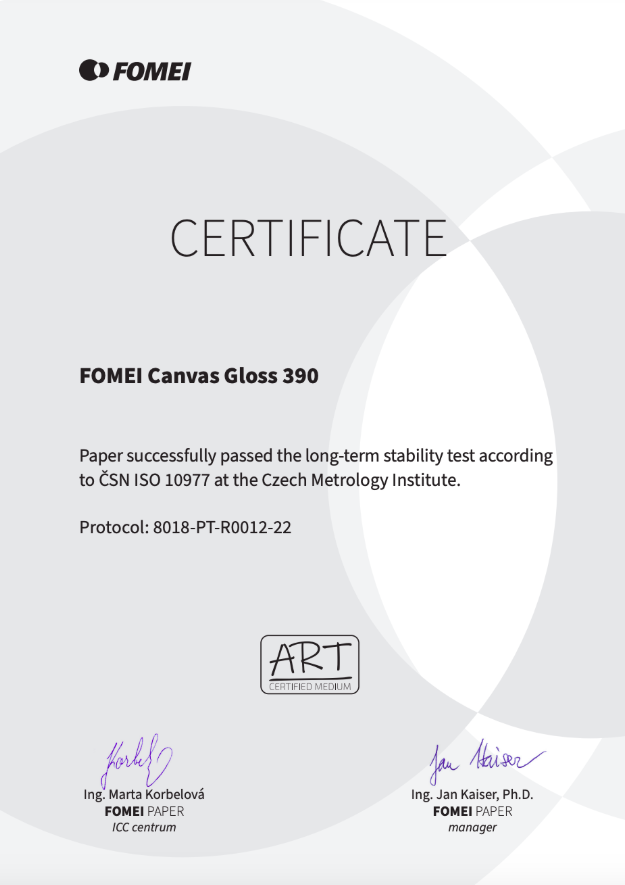 Norma ISO 10977 określa wymagania dotyczące podłoży fotograficznych do druku obrazów. Standaryzuje właściwości takie jak trwałość, gęstość optyczna i odporność na czynniki zewnętrzne, co pozwala na ocenę jakości i trwałości papieru. Dzięki niej masz pewność, że wybierasz płótno spełniające rygorystyczne normy branżowe. Dzięki normie ISO 10977 użytkownik otrzymuje wydruki o przewidywalnej jakości, trwałości i wiernym odwzorowaniu kolorów. Wiele mediów fotograficznych FOMEI spełnia normę ISO 10977, co gwarantuje ich wysoką jakość i trwałość wydruków.