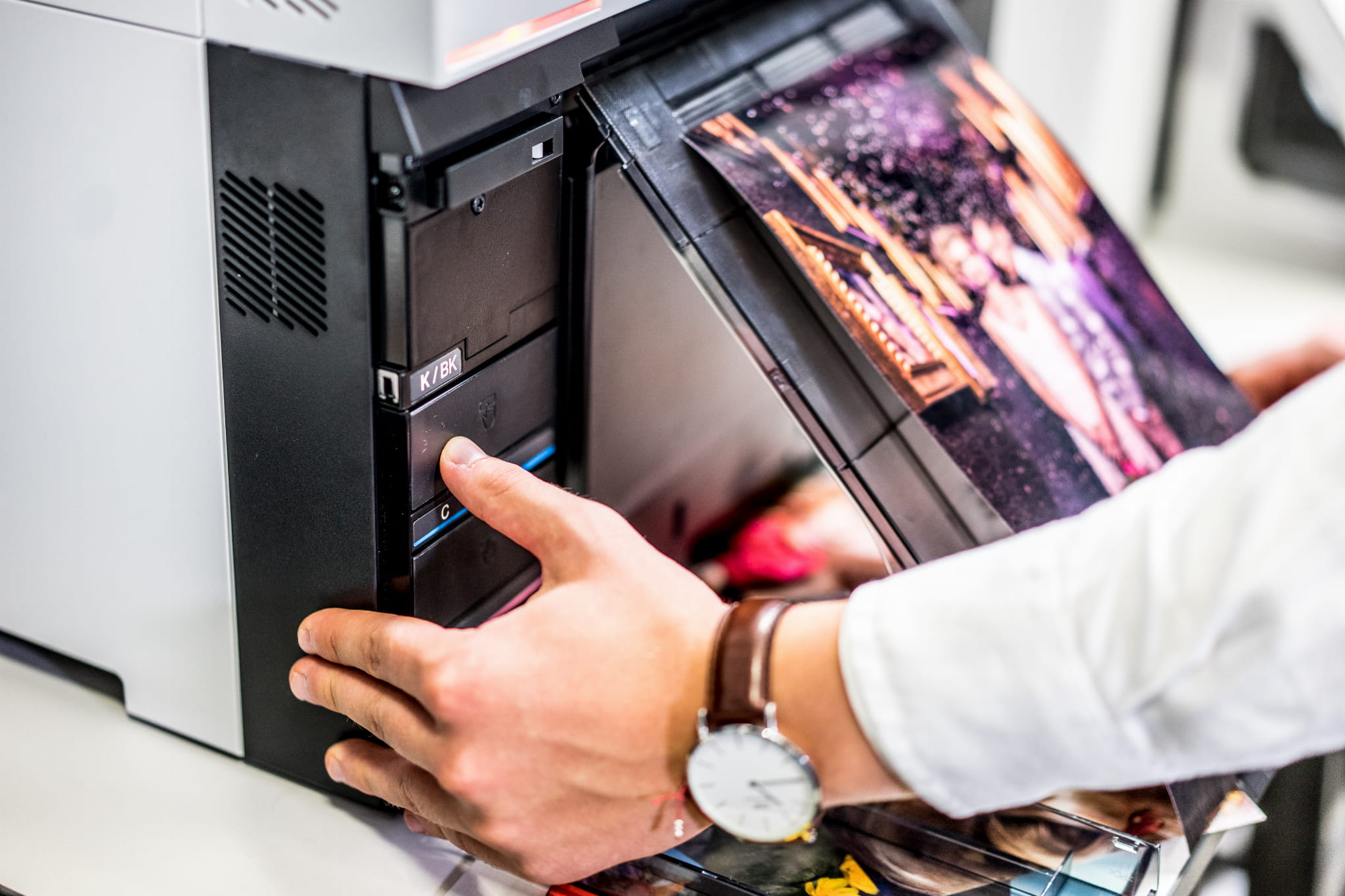 Dzięki Duplex Feeder do Epsona D1000, jesteśmy w stanie zautomatyzować naszą pracę na arkuszach w suchym labie. Podstawa mieści do 100 arkuszy papieru i zapewnia nam prosty sposób na drukowanie dwustronnych wydruków, idealnie sprawdzi się do fotoksiążek.