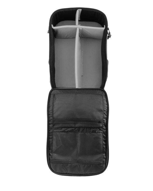 Z pojemnością 37 litrów plecak oferuje cztery główne sekcje. Dwuwarstwowe przegrody pozwalają na bezpieczne przechowywanie dwóch dużych lamp błyskowych lub świateł ciągłych, a także mniejszego sprzętu fotograficznego. Dodatkowe kieszenie siatkowe są idealne do przechowywania przewodów, baterii, kart pamięci i innych akcesoriów. Przednia kieszeń zapewnia dodatkowe miejsce na dokumenty, komputer, paragony i inne potrzebne rzeczy.